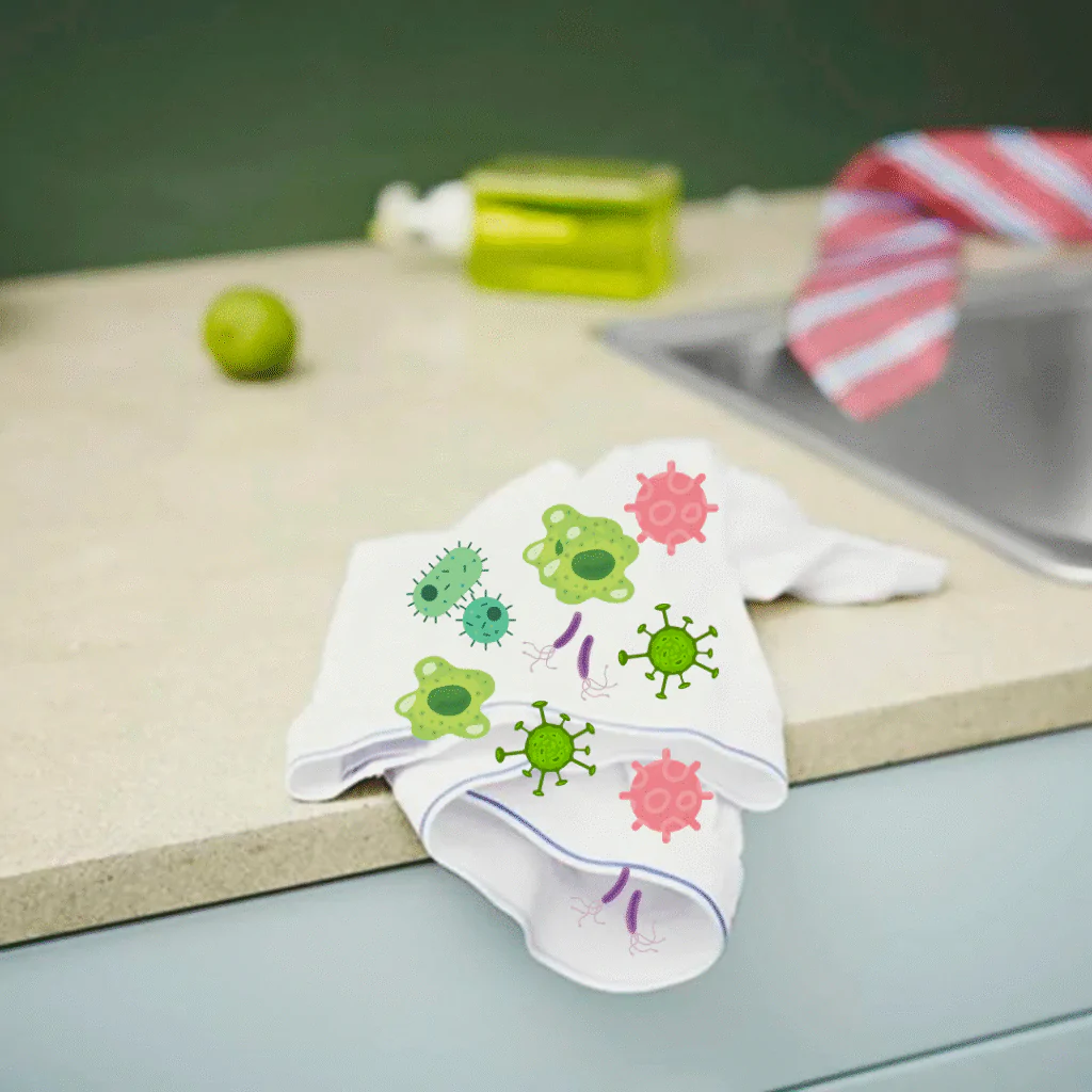 Usado para secar utensílios, mãos e superfícies, o pano de prato acumula umidade, restos de alimentos e microrganismos ao longo do dia.